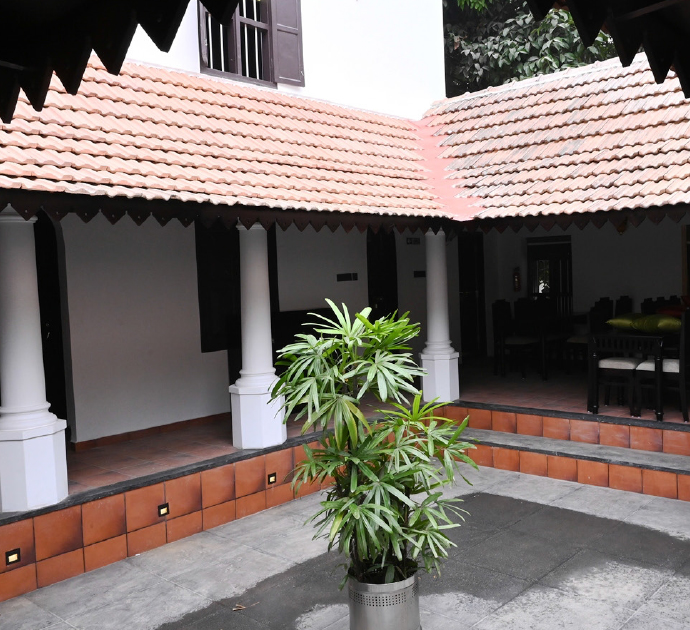 Nested in the quaint, serene banks of the Chalakudy river surrounded by the villages of Ayroor, Kurumassery and Moozhikulam, is this epitome of historical ancestral home of luxury that dates back over a 150 years. A home to an aristocrat Roman Catholic agricultural family, the structure gloriously stands amidst charming centuries old mangosteen trees, rambuttan, mango trees, nut mug trees and more imparting an aura that is priceless.